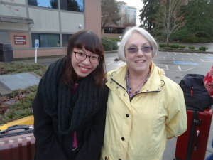 あっという間に時間がすぎ、最終日になりました。前の晩、スーツケースの荷物の重さを量っていなくて、朝量ったら制限をオーバーしていたので、少しドタバタでした。シャンプー、リンスなど少し重いものや荷物になるものなどは置いていきました。 Hannah と Ben が見送りをしてくれて、 Gwen と一緒にスタディセンターへ向かいました。 Ben が「もう私たちは家族だよ。いつでも帰っておいでね。待ってるよ」と言ってハグをしてくれました。この言葉が嬉しくて泣いてしまいました。 Gwen もずっと車の中で、「ほんとに寂しいわ」と言いいながら目がウルウルしてたので、私もつられてウルウルしました。スタディセンターに着くと、もう一度スーツケースの重さを野中先生に量ってもらいました。最後の時間まで Gwen と一緒に話をしました。寂しさと、離れるのが辛いのとで泣いてしまいました。Gwenに最後のハグをして、バンに乗りました。しほのホストファミリーは、バンが見えなくなるまで、ずっと手を振ってくれました。