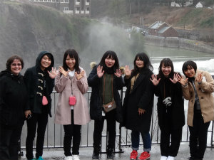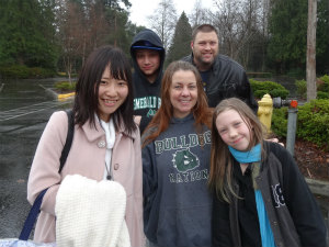 空港を出てからバンに乗り、チョコレート・ファクトリーや滝、ショッピングモールに行きました。チョコレート・ファクトリーはバレンタインが近かったこともあり賑わっていました。まだアメリカのお金に慣れていなかったので、会計の時に Laura が手伝ってくれました。滝は大きくて迫力がありましたが、水しぶきに加え、雨が降っていたこともあり、アメリカに来て早々にビショビショになりました。