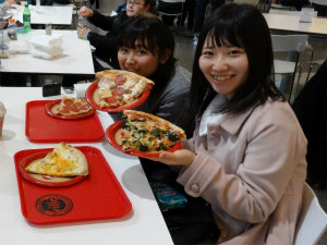 ショッピングモールではまいちゃんとシェアしてランチにピザを買いました。しかし、勘違いから4枚も買ってしまい、とっても大きかったので食べ切れませんでした。