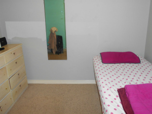 近くに池があり、緑が多くてとても自然豊かな地域でした。裏庭には大きなトランポリンがあります。私は Tiara の部屋を使わせてもらっていました。