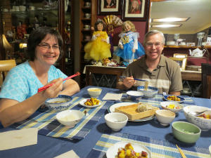 夜、書店に行きました。 Laura がワシントン州の写真集を買ってくれ、とてもうれしかったです。そのあと、 Laura と一緒にそばと大学芋、もちといったような日本料理を作りました。 Laura と Dennis はとても気に入ってくれて、おいしそうに食べていました。