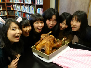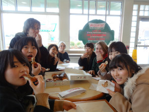 アメリカの祝日を体験しながら勉強しました。イースターエッグを探したり、ハロウィンの仮装をしたり、サンクスギビングとしてホストファミリーが作ってくれた料理を食べました。中でも、ターキーがおいしかったです。そのあとに、カップケーキを作りました。それと一緒に、パンプキンパイとチェリーパイも食べました。とても甘かったです。