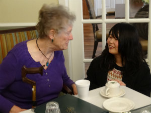 グリーン・リバー・カレッジを訪れました。とても広いキャンパス内を見て回っていたとき、留学中のまりあとおおやに会いました。二人とも楽しそうにアメリカ生活を過ごしているようでした。そのあと、老人ホームを訪れました。老人ホームはとてもゴージャスで緊張しました。施設の中を見学し、老人ホームの利用者の方々とお話しました。そのあと、エントランスで『あめふり』など合唱したり、数のプレゼンをしたりしました。