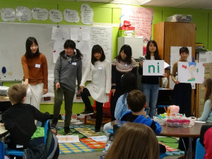 小学校へ行き、数字のプレゼンをしました。文字の書き間違いなどアクシデントが起こりましたが、プレゼンを成功させることができました。また、子どもたちの名前をカタカナにして教えてあげました。英語をカタカナに直すということはとても難しかったです。お昼、子どもたちと一緒にご飯を食べました。以前語学研修に行った先輩のホストシスターのモーガンとたくさんお話しました。また、子どもたちと一緒に遊んだ際、あっちこっちに連れまわされたり、走ったり、雲梯したり、縄跳びしたりと、子どもたちはとても元気でパワフルでついていくのが大変でした。次の日、筋肉痛でした。