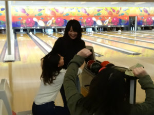 夜、 Laura と Dennis がボウリングに行く日であったため、一緒にボウリング場に行きました。そこには、ちいと彼女のホストマザー Gwen、ホストシスター Hannah もいました。彼らが ボウリング をしている間、ちいと一緒にハンバーガーを食べていました。