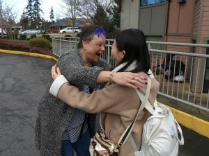 スタディセンターに着くとホストファミリーが迎えに来てくれているところもあり、迎えに来てくれてる人からみんなと別れました。Jane と初めて会ってすごく喜んでくれて、本当に嬉しかったです。Jane の車に乗る時に左側の方から乗ろうとしてしまい、反対だよと言われた瞬間ここはアメリカなんだと実感しました。少し緊張していたんですが、いっぱい話しかけてくれたので緊張がほぐれました。