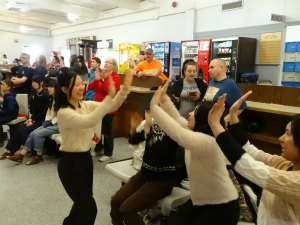 午前は発音練習をしました。 “would” と”wood” の発音の違いが難しくて、家に帰ってから Jane に教えてもらいいっぱい練習しました。午後はみんなで消防署へ行きました。実際に消防服を着させてもらったり、消防車に乗ったり貴重な体験をさせてもらいました。女性の方が多くて驚きました。特に消防服の早着替えはとってもかっこよかったです。質問をしたら、私たちにわかりやすいようにゆっくり話してくれました。