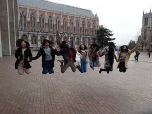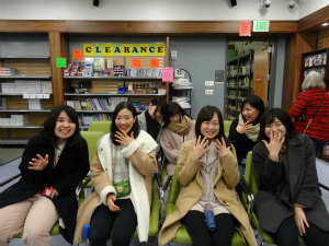 みんなで1日シアトル観光でした。午前は、ワシントン大学とチョコレートファクトリーなどに行きました。ワシントン大学は広い敷地で建物もオシャレで、まるで映画で出てくるような場所でした。図書館は本がたくさんあってハリーポッターの世界にいるようでした。みんなでジャンプをした写真は奇跡的に成功して、思い出の1枚になりました。次にチョコレートファクトリーに行きました。初めてカレー味のチョコレートにチャレンジしてみたのですが、あまりおいしくなかったです。その後スペースニードルに上りました。雪が降っていて景色はあまり良くなかったですが、念願のスペースニードルにみんなで上ることができ、とてもテンションが上がりました。