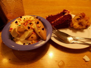 夜はビュッフェに連れていってもらいました。アメリカの料理だけでなく、メキシコ料理などもあってどれも美味しかったです。デザートもたくさんあり、少しずついろいろな種類のケーキを食べました。アイスも食べられて幸せでした。食べ終わったお皿は、手前に置いておくと店員さんが片付けてくれることを Jane から教えてもらいました。日本だと片付けも自分でやらなければいけないので、日本とアメリカのビュッフェの違いを知ることができました。