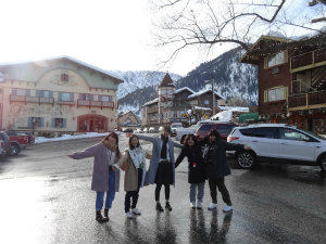 8時にスタディセンター集合だったので、いつもより早起きしました。長時間バンに乗って Leavenworth に行きました。着くと少し雪が積もっていて寒かったけれど、景色が最高に綺麗でした。クリスマスグッズがたくさんあるお店や帽子のお店など、いろんなかわいらしいお店が並んでいました。お昼はレストランでチキンの入ったパンとソーセージを食べました。パンの中に入っていた酸っぱい玉ねぎがあまりおいしくありませんでした。Laura が注文したホワイトソーセージがとても美味しかったです。その後 Laura がアイスクリーム屋さんに連れていってくれて、佐藤のあきなとシェアしてスイートクリーム&パッションフルーツのアイスを食べました。とっても美味しかったです。