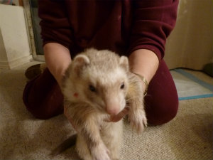 抱っこをすると、そのまま寝てしまうフェレットでした。歩き方がとてもかわいかったです。 |