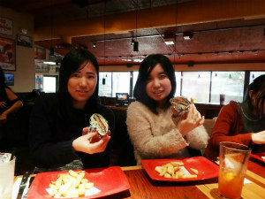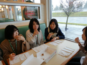 この日は優海ちゃんのホストマザーの運転で Green River College へ行きました。緑がとてもいっぱいの学校でした。留学中の2人にも会うことができました。午後はドーナツを食べて、モールに行きました。フードコートでは各お店の店員さんは試食をさせてくれ、様々な国の料理を食べることができました。そのあとは買い物をしました。