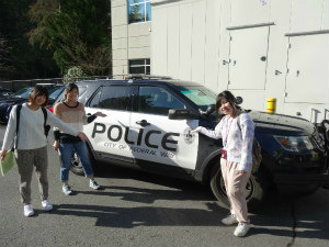 午前はスタディセンターでコインの数え方を学習しました。先輩のホストシスターの Kara も来てくれました。お昼からは秋菜ちゃんと美咲ちゃんのホストファミリーと合流し、裁判所と警察署と市役所に行きました。警察署の方は私たちがわかるようにゆっくり話してくれました。