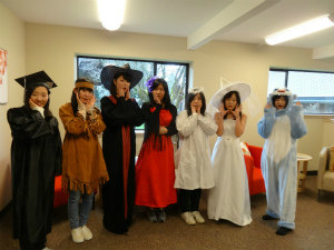 この日はアメリカンホリデーを体験しました。みんなでホストファミリーから借りたハロウィーンのコスチュームを着て、サンクスギビングで食べるごちそうをいただきました。ターキーの大きさに驚きました。残念ながら、私の口に合うものは少なかったです。イースターの卵探しの代わりに Laura があちこちに隠したチョコレートを探しました。そのあとは小学校のプレゼンの練習を少ししました。