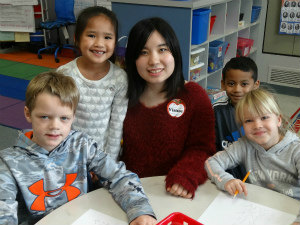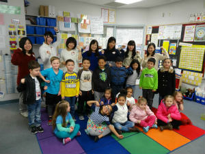 この日は祝日ということもあり、ホストファミリーと過ごす子が多い日でした。午前はオムライスや肉じゃがなどの料理の作り方を英語で説明しました。午後はシニアセンターへ行きました。とてもきれいな建物でホテルやレストランのようでした。「あめふり」と「ふるさと」を歌い、色や数の日本語も教えました。