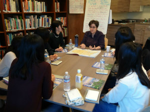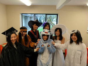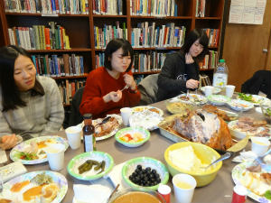 Laura とひなまつりやこどもの日などの日本の祝日について話しました。その後ハロウィン、イースター、サンクスギビングというアメリカの祝日を体験しました。みんなでハロウィンのコスプレをして、私はイエティというモンスターの着ぐるみを着ました。サンクスギビングでは、それぞれのホストファミリーが作った料理を持ち寄って食べました。マッシュポテトと、かなのホストマザーの Jane が持ってきたターキーがめちゃくちゃおいしかったです。イースターでは、 Laura が部屋中に隠したチョコレートをみんなで探しました。パンプキンパイを食べるときに Laura に大量すぎるホイップクリームをかけられて爆笑しました。
