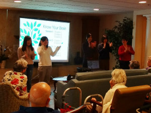老人ホームにおじゃましました。ホテルかと思うくらいきれいな建物でした。「あめふり」と「ふるさと」をジェスチャー付きで歌ったり、日本語での色の言い方について教えたりしました。利用者の方とお話して、とても楽しかったです。みなさんとてもお元気でびっくりしました。