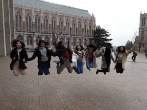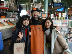 シアトル観光デーでした! はじめに行ったワシントン大学は敷地がとても広く、中にある図書館はハリーポッターの世界みたいでした。そのあと Theo というチョコレート屋さんに行き、お土産にカレー味のチョコレートを買いました。途中で巨大なトロールの像があったのでみんなで上りました。そして一番楽しみにしていたスペースニードル! 雪が降っていたので上れるか心配だったけれど、上ることができてよかったです。シアトルの街や海が一望できてテンションが上がりました。スターバックス一号店では、ゆみちゃんがボトルを4つも買っていました。パイク・プレイス・マーケットには魚、果物、お土産など様々なお店があり、たくさん買い物をしてしまいました。ここでみんなでおそろいのTシャツも買いました。その後セーフコ・フィールドという大きな野球場に行きました。選手の使っていた道具が展示されていたり、マリナーズのグッズがたくさん売られていました。最後に Uwajimaya というお店に行きました。ここで日本食の材料を買うことができます。たくさん歩きまわって疲れましたが、みんなで写真をいっぱい撮れてとても楽しい一日でした。