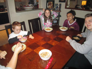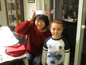 この日はバレンタインデーで、家に帰ったら Brianne がみんなの席にチョコレートと手紙を用意してくれていました。「これがアメリカのバレンタインかあ、オシャレだな〜!」と思いました。そして Jaxen がかわいい手作りのかぶりものをくれました。夕飯を食べた後、トランプをして遊びました。Old Maid というババ抜きに似たゲームをしたり、七五三を教えてあげたりしました。