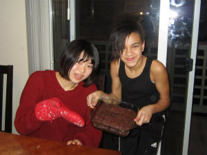 夕方に、 Kyleigh と一緒にブラウニーを作りました。とてもおいしくできました。夕ご飯はハワイアンピザという、パイナップルがのったピザを食べました。意外とおいしかったです。