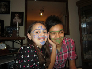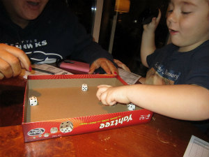 家に帰ってから見た”The Heat”という警察のコメディ映画がとても笑えて面白かったです。夜は肉じゃがを作りました。みんな美味しいといって食べてくれましたが、子どもたちは野菜を残していました。お土産としてあげたお箸を Brianne と Daniel が使ってくれましたが、すごく難しいと言っていました。私が納豆を食べていたら Brianne が興味を示していたので、「私の一番好きな食べ物なんだよ」と言って匂いをかがせてあげたら「少し甘い匂いがする」と言っていました。そんなに悪くないようです。夕飯の後は、Yahtzee というサイコロを使ったゲームをしました。子どもたちはテンションが上がりすぎて、顔に落書きをしだしたりしてました。