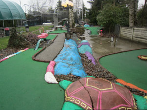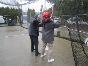 バッティングセンターに連れていってもらいました。小さなゴルフ場もあって、坂道や動く地面などいろいろなコースがあり、 Jaxen と一緒に探検しました。Daniel にフォームを教えてもらい、バッティングにも挑戦しました。初めてだったけれど、思ったより上手に打つことができて気持ちよかったです。雨が降っていたけれど、とても楽しかったです。