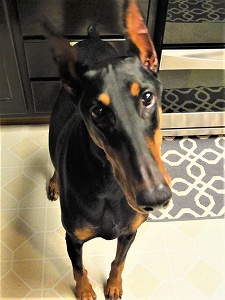ドーベルマンの女の子で、とてもかわいいです。とても人懐っこかったです。撫でてもらうのが好きで、よく手や足にすり寄ってきました。猫用のレーザーのおもちゃが大好きで、遊んでいる時はとても迫力がありました。 |