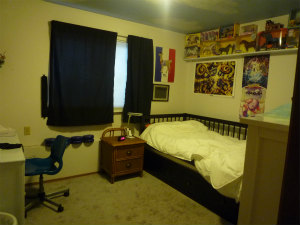 部屋にはポケモンのポスターや馬のフィギュアがたくさん飾られていました。空模様の天井でしたが、電気を消すと夜空模様に変わる素敵な部屋でした。3週間お世話になりました!