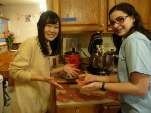 夕飯の前に Ralph の両親の Peg と Dick が来て、一緒にゴーフィッシュというトランプのゲームをして遊びました。夕飯は一緒にハンバーガーを食べたのですが、大きくてとてもおいしかったです。Peg もチョコレートをくれました。みんなにも日本のチョコレートを渡したら、喜んでくれました。