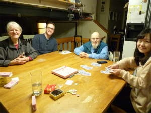 夕食前には Peg と Dick が来ました。夕食では私が食べたいと言っていたアメリカの家庭料理のミートボールスパゲティーを作ってくれました。とてもおいしかったです。Alissa はパンまで自家製で驚きました。食後はみんなでカードゲームをして遊びました。難しかったのですが、Peg が助けてくれたので一緒に楽しむことができました。