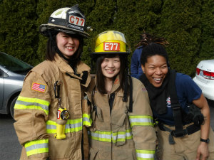 午後は消防署へ訪問に行きました。質問をして日本との違いを学びました。実際に行われる早着替えの様子を見させてもらいました。防火服を着させてもらったほか、実際に放水の体験もしました。女性の方が多く、驚きました。