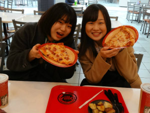 午後は最初にクリスピー・クリーム・ドーナツに行き、みんなでいろいろな種類のドーナツをシェアして食べました。とっても甘かったです。その後に、タコマモールに行き、お昼には大きなピザをシェアして食べました。その後に、ショッピングを楽しみました。とても広く、日本のお菓子やキャラクターグッズが結構売られていて、驚きました。