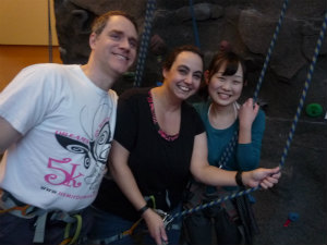 家に帰った後は、少し早めの夕食を取り、夜は秋菜ちゃんのホストファミリーも一緒にみんなでプールに行きました。浮き輪で遊んだり、ウォータースライダーに乗ったり、水中でのバスケットボールをしたりして、とても楽しかったです。初めてボルダリングもしました。想像よりもきつかったのですが、上まで登れて楽しかったです。Genieはすらすらと登れていて、すごいな〜と思いました。