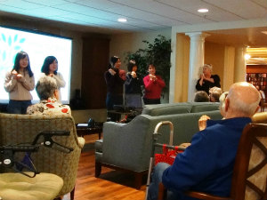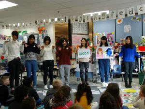 午後はシニアホームに行き、「ふるさと」や「あめふり」の歌にジェスチャーをつけながら日本語と英語で歌いました。日本語の色も教えました。シニアホームはとてもきれいでホテルみたいで驚きました。日系人の女性にも会い、お話をしました。