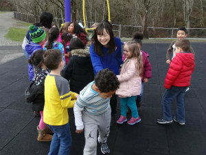 午前は Green River College に行き見学をしました。とても大きくて広いところでした。大学のグッズが売られていて、小野ちゃんのホストマザーの Gwen がみんなにおそろいのストラップを買ってくれました。留学に行っていた奈央ちゃんと聖ちゃんにも久しぶりに会うことができました。2人とも元気そうでした。
