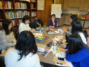 午前はみんなでクラッカーを使いアメリカのお菓子を作りました。野中先生のホストマザーの Terry が教えてくれました。甘くておいしかったです。その後に、Terry の指導でホストファミリーにプレゼントするジャーナル作りをしました。