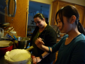夕飯には Ralph の叔母の Loran が来ました。Loran の誕生日だったのでケーキを作り、みんなで食べました。サクランボのケーキでとても甘かったです。
