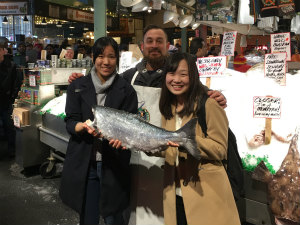 朝、Genie と一緒にパンケーキを焼いてみんなで食べました。私のホストファミリーと秋菜ちゃん、秋菜ちゃんのホストファミリーと一緒にシアトルに行きました。最初に Ralph の仕事場に行くと、広くてとてもきれいでした。お昼は Ivar's というシーフードレストランに行ったのですが、私はシーフードが苦手だったので、チキンとフライドポテトを食べました。クラムチャウダーを一口もらったのがとてもおいしかったです。Ivar'sの周辺には、お土産屋さんがあり、シアトルのグッズがたくさん売られていました。その後に Wings Over Washington というシアトルの絶景が見られるアトラクションに乗りました。映像に迫力があり、気持ちよかったです。パイク・プレイス・マーケットでは魚を持たせてもらい、貴重な体験をしました。スターバックスの1号店にも行きましたが、行列ができていたので、店内には入りませんでした。夕飯は「東京」という日本料理店に行きました。日本料理とは少し違いましたが、おいしくいただきました。