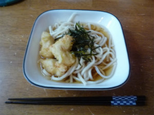 お昼ご飯にはうどんと鳥の天ぷらを作りました。天ぷらを喜んでもらえてよかったです。量が少なくなってしまったので、少し多めに作ればよかったと思いました。みんなにあげた箸を使ってくれましたが、箸の使い方が上手で驚きました。その後に、ココアにマシュマロを入れたものを飲んだのですが、甘くてとてもおいしかったです。