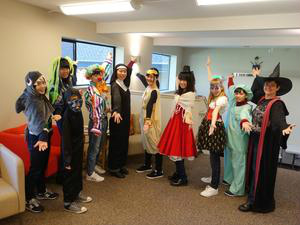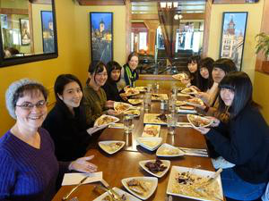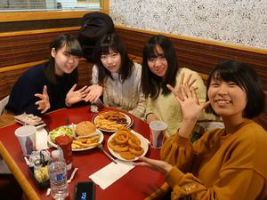 午後は、スタディセンターに戻り Laura の Facebook の写真を見ました。私たちの活動の記録や、今までの先輩の写真を見ることができて楽しかったです。その後は、日本の行事について話しました。元日や、ひな祭り、七五三などアメリカにはない行事について比較しました。実際に行事などを言葉で伝えるのは難しいと感じました。
