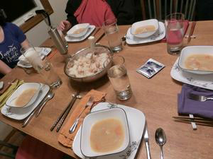 夜は、ちらし寿司と豚汁を作りました。 Alissa の母の Stevie と、 Remi の友達も来て一緒に食べました。みんなおいしいと言って食べてくれたので嬉しかったです。特にStevie が喜んでくれ、また食べたいと言っていたので嬉しかったです。 Geni は友達の家に泊まりにいっていて不在でした。その後は、 Remi と Remi の友達と3人でゲームをしました。操作が分からなかったので優しく教えてもらいました。ホストファミリー以外と仲良くなることができて嬉しかったし、とても楽しかったです。