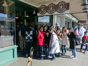前週行けなかったシアトルに行きました。まず初めに、ワシントン大学に行きました。建物はとても大きくきれいでした。「ハリーポッター」に出てくるような図書館にも行くことができ圧巻でした。それから、Theo というチョコレート店に行きました。試食もすることができ、お土産もたくさん買うことができました。その後もいろいろな所を回ることができました。昼食をとり、Pice Place Marketに行きました。 Starbucks 1号店で、スタバ1号店にしか売っていないマグカップを買うことができて、うれしかったです。また、Gum Wall に行ったり、みんなでおそろいのTシャツを買ったりもできました。それから、Safeco Fieldに行きました。私と私の家族、従妹はみんな野球が好きなので、たくさんのお土産を買うことができました。最後に、宇和島屋 という日本の食材が売られているお店に行きました。他にも、ひな壇や、日本の漫画などさまざまな日本の物が売られていました。
