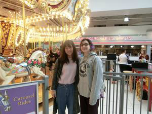 Alissa に「どこか行きたいところはあるか」と聞かれたので、私は「リュックが壊れてしまっていたので買い物に行きたい」と話しました。すると、Alissa、 Ralph がもしかしたら直せるかもしれないと言い手芸道具などが売られているお店に行きました。よい部品がなく直すことはできなかったのですが、すごくありがたかったです。その後はモールに行きお昼ご飯にシェイクやオニオンフライ、ハンバーガーを食べました。ボリュームがすごかったです。その後は、メリーゴーラウンドに乗ったり、かばんも買えたりしたので良かったです。