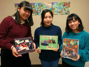 皆でホストファミリーにあげるアルバムとフレームを作りました。また、 Laura にあげるアルバムを秘密で作っていましたが、バレていました。皆で作業しながらおしゃべりして、楽しかったです。