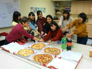 この日もアルバムとフレーム作りをしました。早く終わった学生は近くのスーパーで日本へのお土産を買っていました。遅めの昼ご飯には、ピザを食べました。