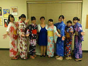 夕方はさよならパーティーを開いてもらいました。皆で浴衣を着て、プレゼンテーションをして、ケーキを食べ、たくさん写真を撮りました。プレゼンテーションでは緊張しました。