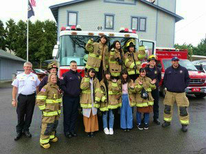 午前中は消防署へ行って質問したり、防火服を着たり、消防車に乗ったりしました。アメリカの消防士たちは素晴らしい人たちで、いろいろな体験ができて楽しかったです。