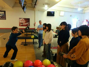 午前中はさよならパーティーでホストファミリーにあげるアルバムとフレームを作っていました。午後はボウリング場に行き、レストランで昼ご飯を食べました。その後、 Jason もボウリング場に来てくれて、春香、 Jason と三人でチームを組んでボウリングをしました。 Laura はとてもボウリングが上手なので、ボウリングのやり方を教えてもらいました。 Jason もボウリングが上手でした。