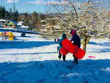 この日はシアトルに行くはずだったのですが、雪だったので学校は休みでした。 Samantha の学校が休みだったので、私、 Samantha 、春香のホストシスターとホストマザーで公園でそりをしました。 Samantha とレースしたり、二人乗りをしたりしました。春香と雪だるまも作りました、とても楽しかったです。その後、みんなでコストコへ買い物、食事に行きました。