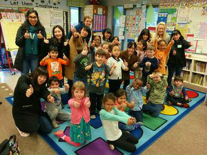 一日かけて小学校でプレゼンテーションする日でした。小学生に1から10までの数字を日本語で教えたり、一緒に昼ご飯を食べたり、校庭で遊んだりしました。アメリカの子供たちはとても元気で可愛かったです。